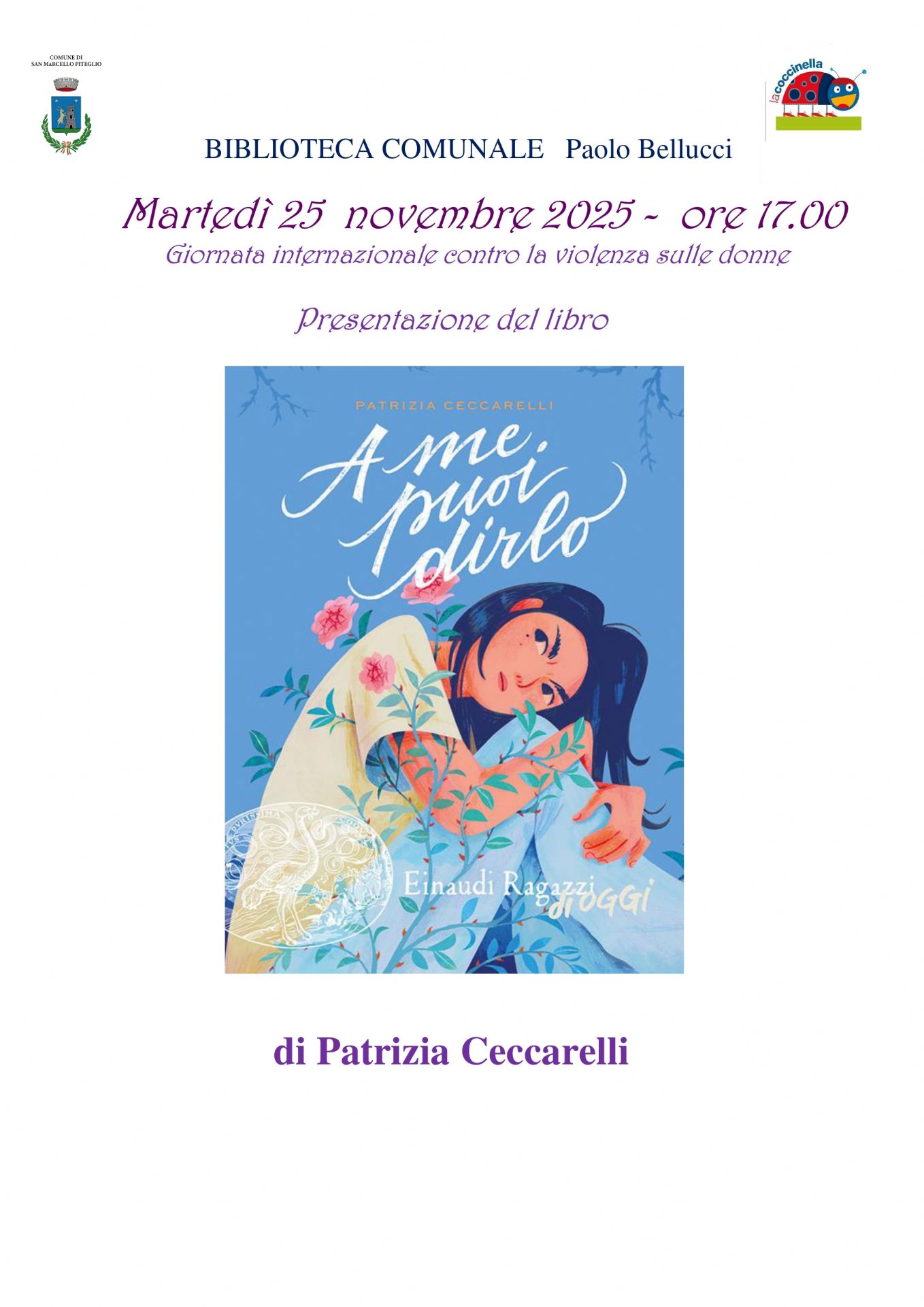 Il libro di Patrizia Ceccarelli, dal titolo " A ME PUOI DIRLO", narra una storia intensa e delicata sulla fiducia, la resilienza e il potere delle parole. Età di lettura: da 13 anni.
