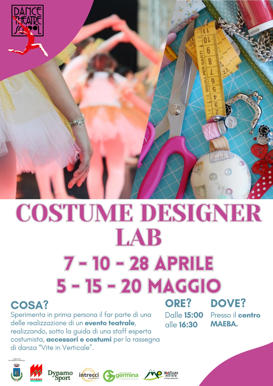 Sperimenta in prima persona il far parte di una delle realizzazione di un evento teatrale, realizzando sotto la guida esperta di una staff esperta costumista, accessori e costumi per la rassegna di danza "Vite in Verticale".