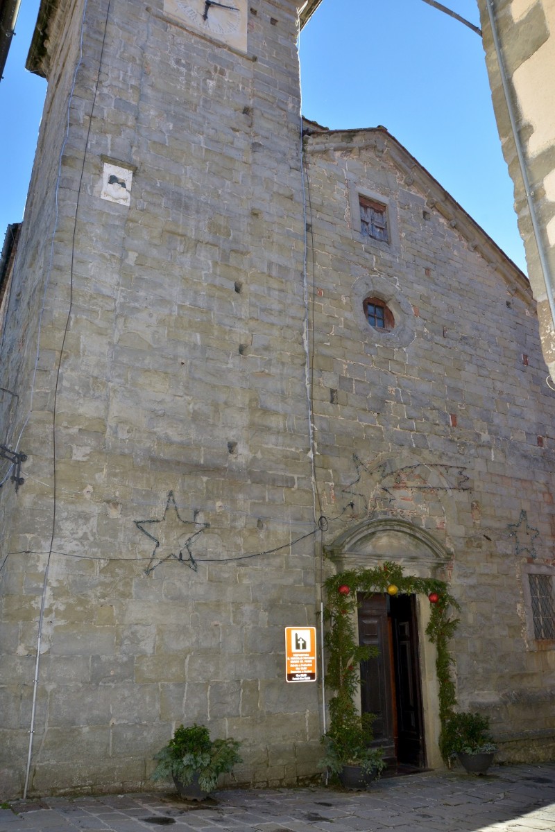 Dopo la trasformazione dell'antica rocca romana, avvenuta intorno ai secoli XI - XII fu deciso un ingrandimento della chiesa sulla sinistra, a causa della scarsa solidità del terreno nelle altre direzioni, con inglobamento del campanile. Tutto questo, oltre a confermare l'esistenza dell'antica torre prima della chiesa, giustifica l'aspetto della facciata attuale che risulta non allineata con il campanile.
