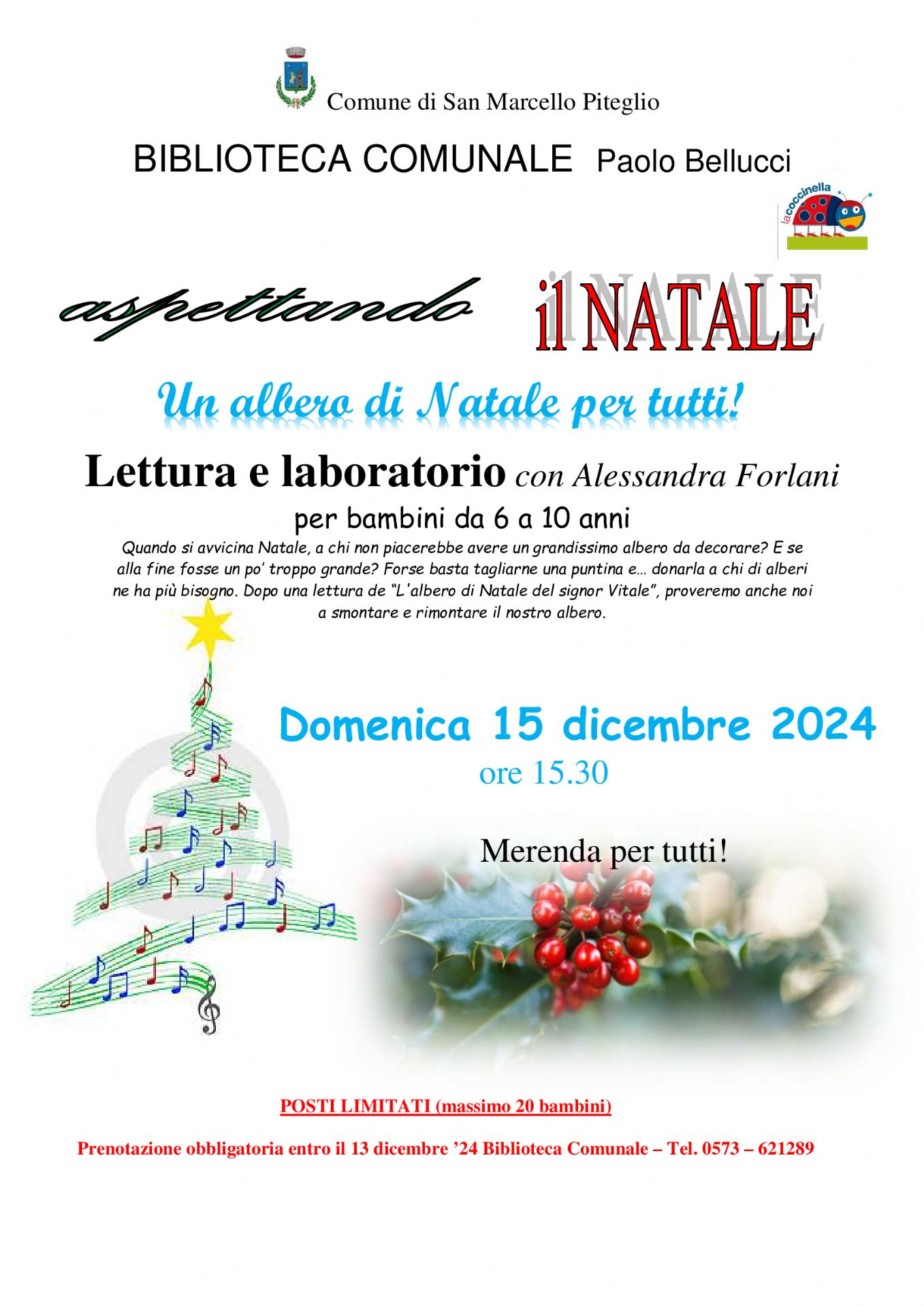 Prenotazione obbligatoria entro il 13 dicembre al numero 0573 621289 o direttamente presso la Biblioteca comunale (massimo 20 bambini)