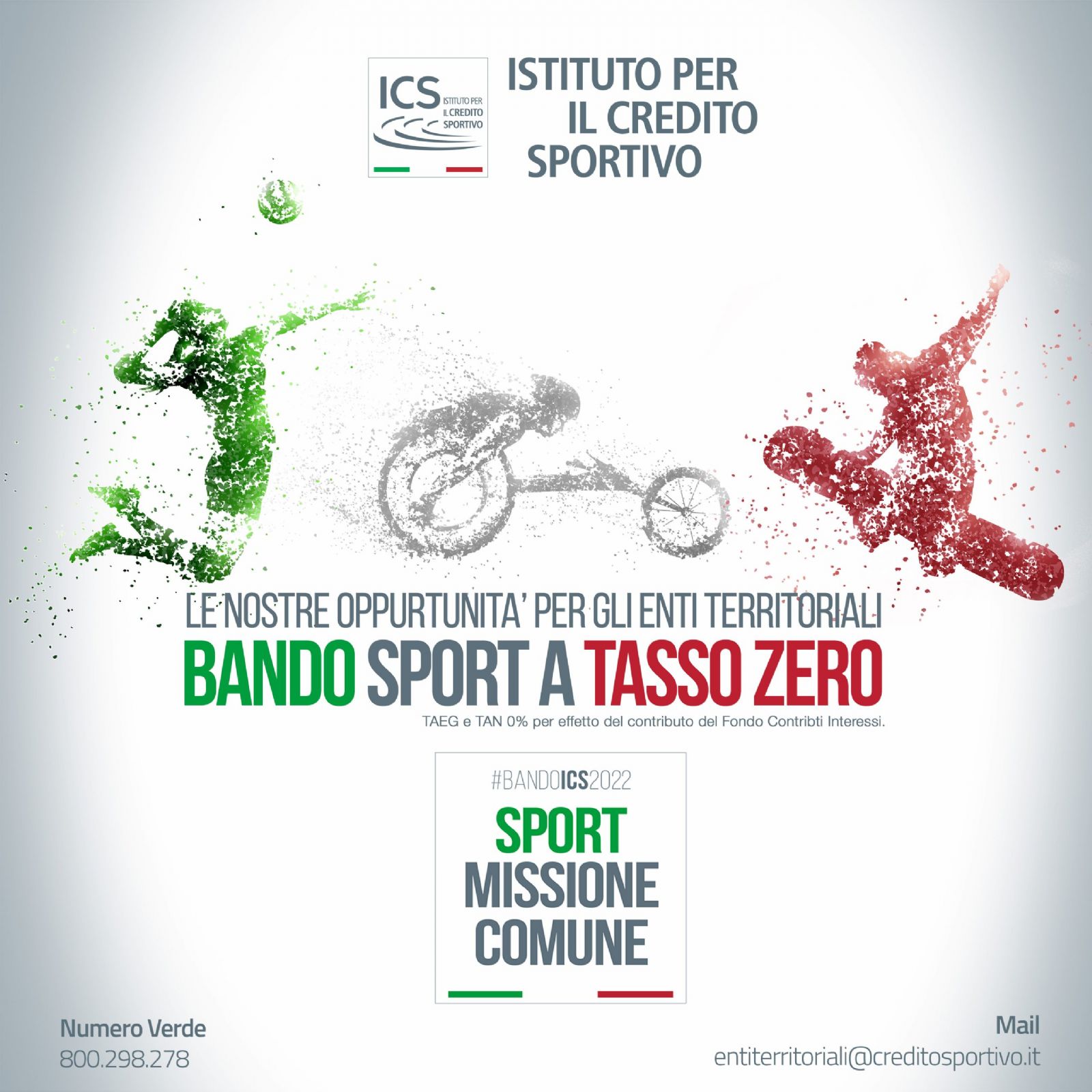 Il Comitato di Gestione dei Fondi Speciali dell’Istituto per il Credito Sportivo ha stanziato per l’iniziativa “Sport Missione Comune 2022” un importo di 15 milioni di euro di contributi in conto interessi destinati all’abbattimento degli interessi di mutui a tasso fisso, richiesti ma non ancora concessi al momento della presentazione dell’istanza di contributo, da stipulare obbligatoriamente entro il 31/12/2022 con l’Istituto per il Credito Sportivo o altro soggetto finanziatore appositamente convenzionato.